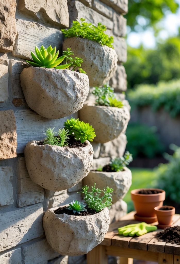 You can make planters that look like stacked stones using hypertufa. This project lets you build layers to create a natural, rustic effect.