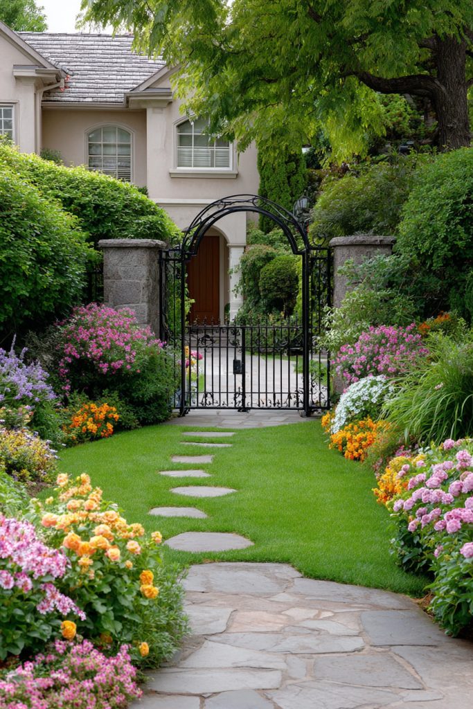 You can add charm and security with an ornate iron garden gate. These gates often have detailed designs that make your entrance stand out.