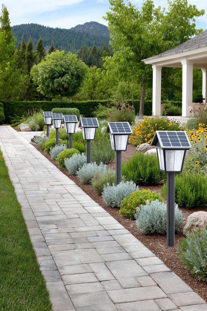 These lights charge during the day and glow softly at night, making your path safe and inviting.