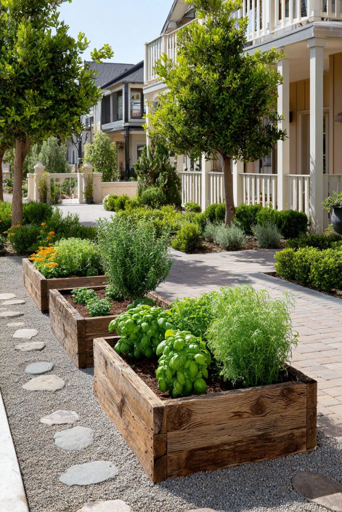 Raised garden beds are perfect for growing herbs. You can easily reach your basil, mint, or rosemary without bending down too far.