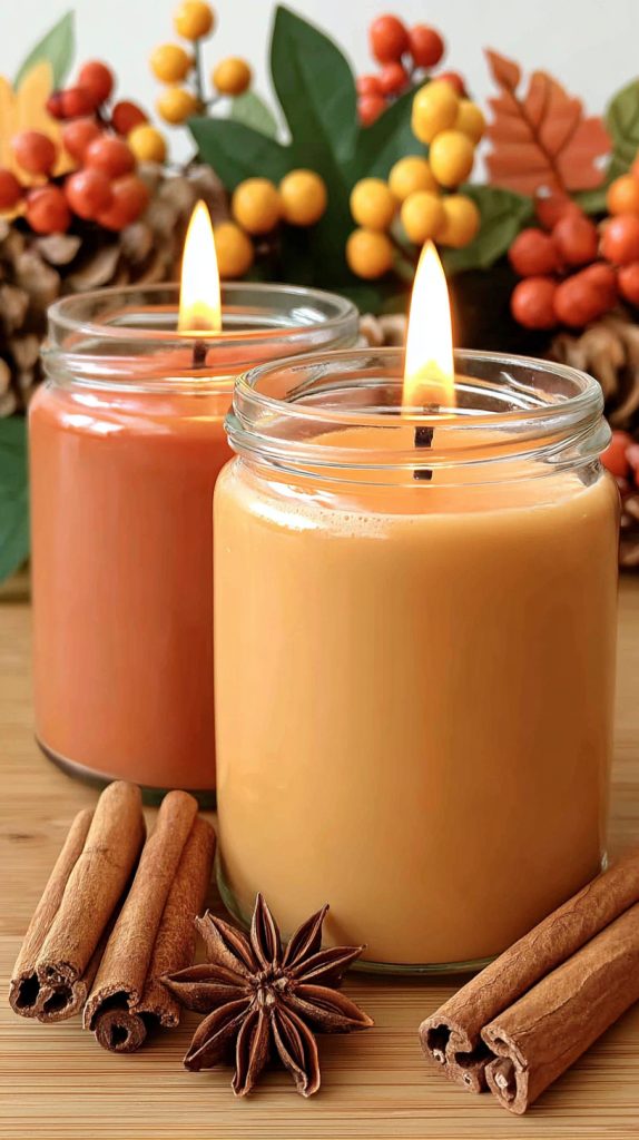 You can bring the cozy feeling of fall into your home with pumpkin spice-scented candles. They fill your space with warm scents like cinnamon, clove, and nutmeg. Lighting one is an easy way to enjoy the soft, spicy aroma that reminds you of autumn days. It adds a nice touch of comfort and seasonal charm to any room.