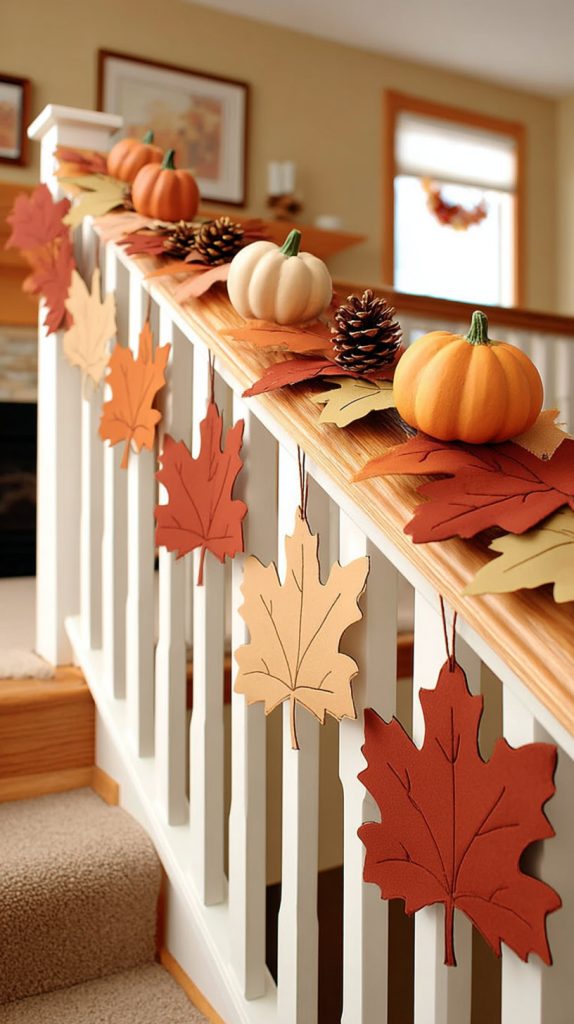 You can use faux maple leaf garlands to bring a warm autumn feel to your home. They look real but last longer than natural leaves.