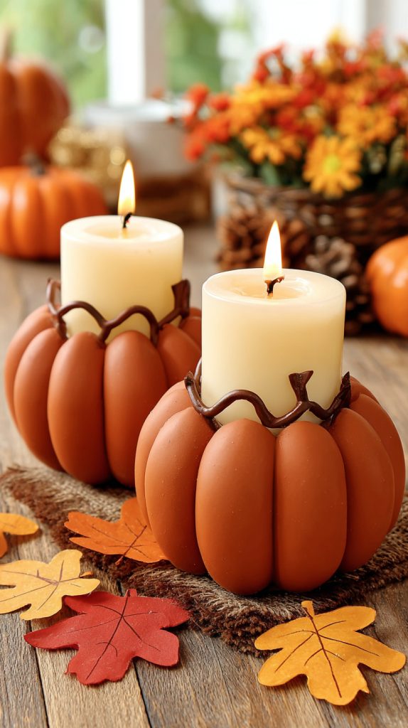 These holders look great on your table or mantel. You can even mix them with real pumpkins or autumn leaves for a simple, stylish display.