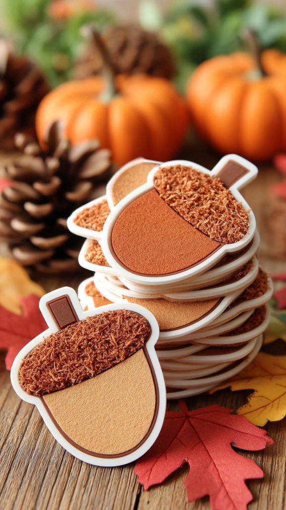 You can make felt acorn coasters to add a cozy touch to your fall decor. They are simple to create with felt fabric, scissors, and thread.