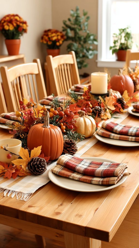 You can make your fall table feel warm and cozy with plaid decorations. Using plaid napkins adds a simple but charming touch to your meals.