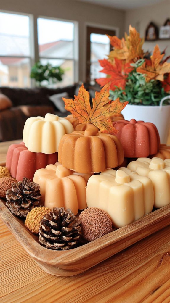 You can add a little fall charm to your bathroom or kitchen with pumpkin-shaped soap bars. These soaps look cute and fit perfectly with autumn decor.