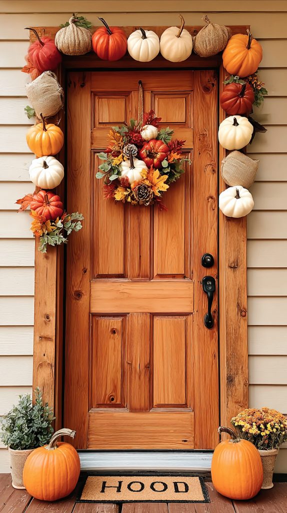 You can create a warm, welcoming look by hanging a rustic gourd garland on your porch. Use small gourds in different shapes and colors for a natural, cozy feel.