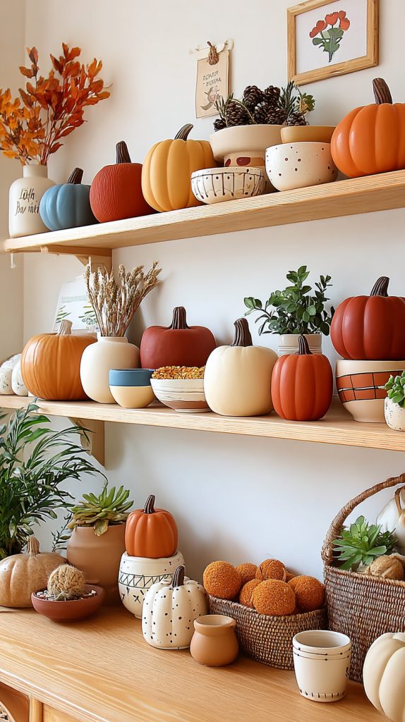 Try painting them with simple patterns or soft colors for a fresh look. Place them on shelves, tables, or your porch for a warm autumn touch.