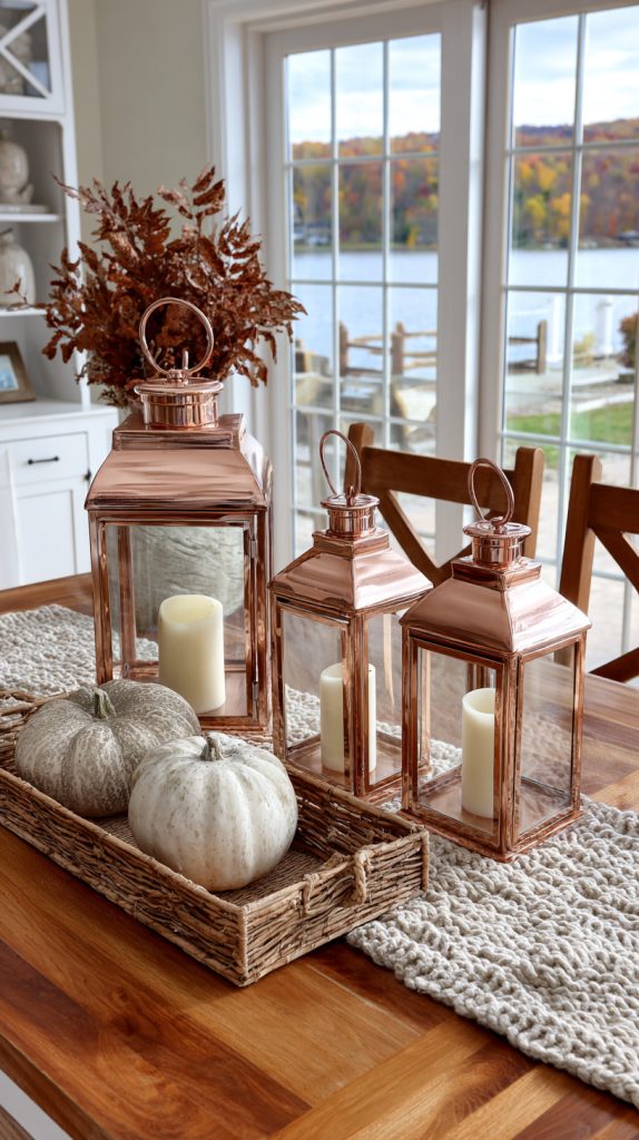 Copper lanterns also work well with other fall decorations like leaves and small pumpkins. They make your space feel inviting without much effort.