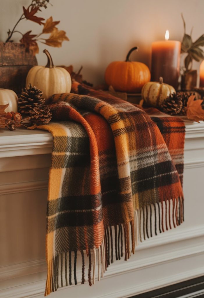 Choose autumn shades like reds, greens, or browns to match other decorations. A plaid throw also adds a soft, inviting feel to your space.
