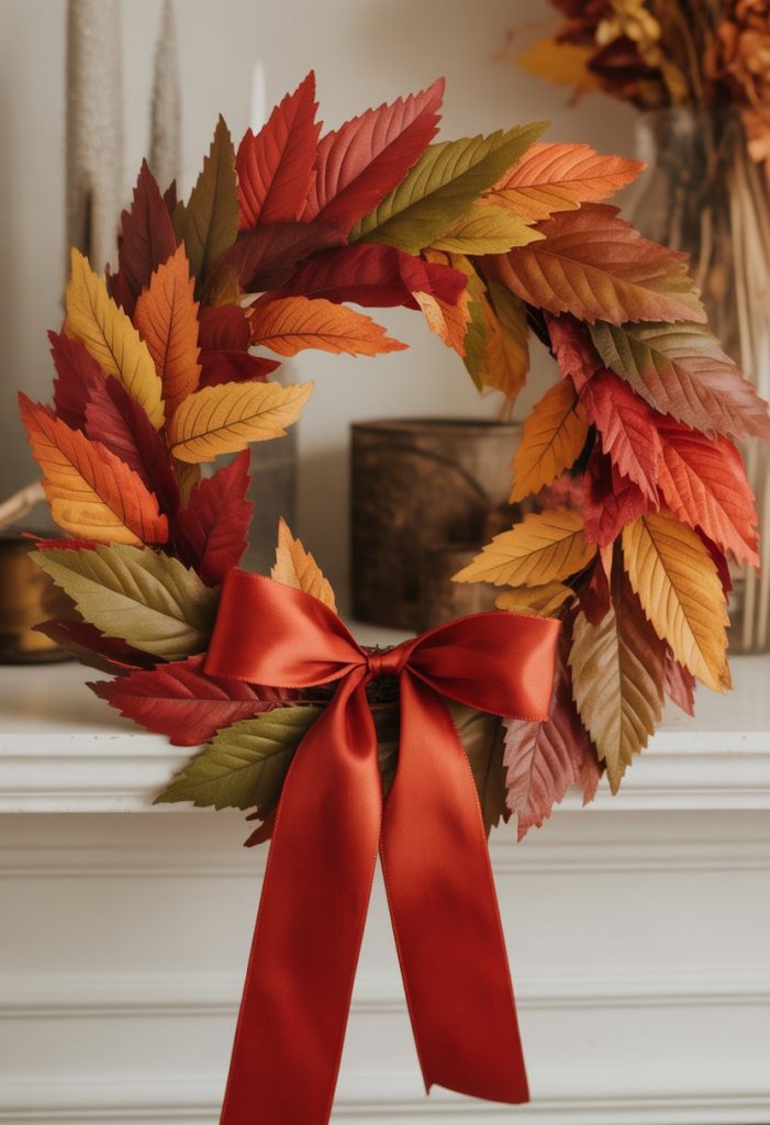 20. Autumn leaf wreath with ribbon bow