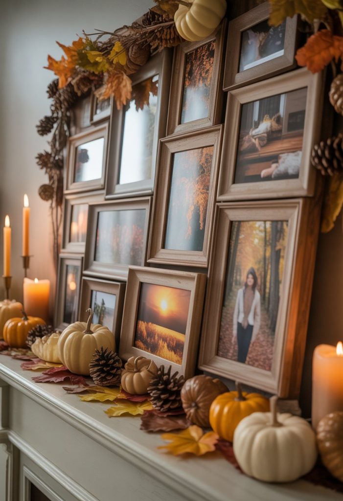 Arrange family pictures or autumn scenes inside, mixing sizes for interest. This simple idea brings warmth and memories to your fall decor.