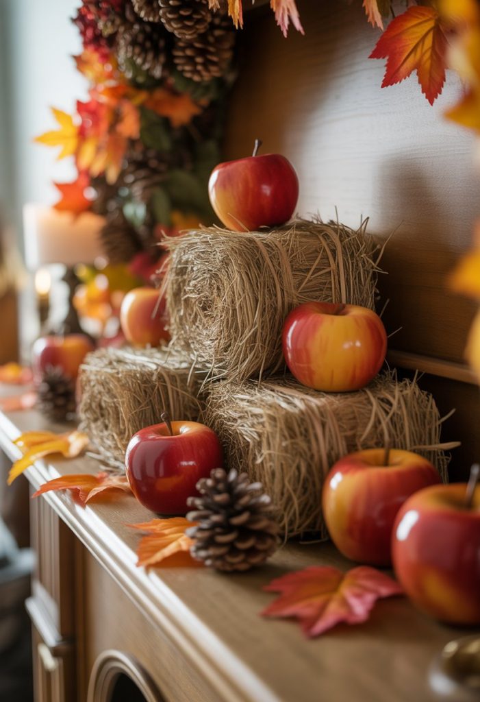 24. Mini hay bales with faux apples