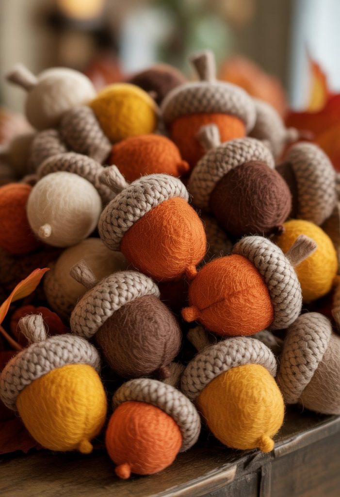 - 29. Felt acorns in warm autumn colors