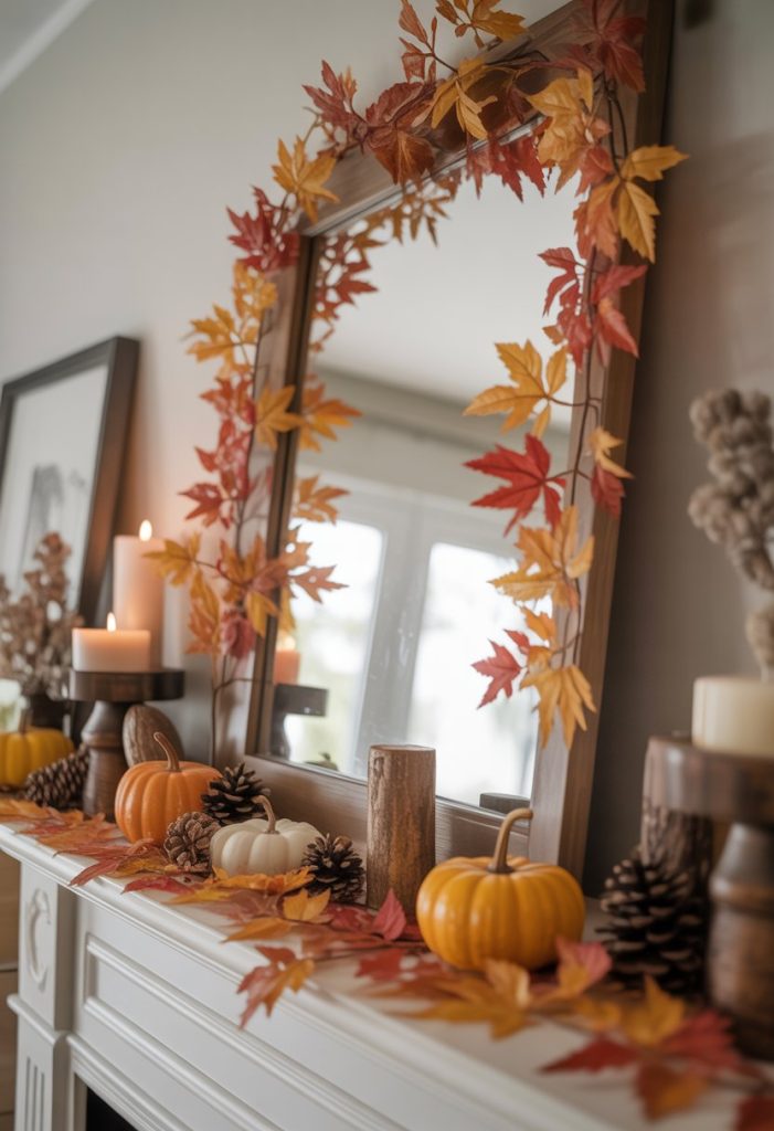 5. Mirror with autumn leaf accents