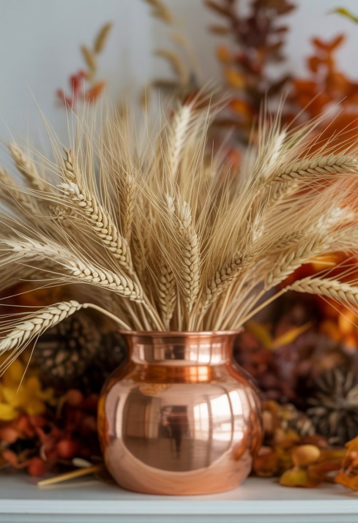 7. Copper vase filled with wheat stalks