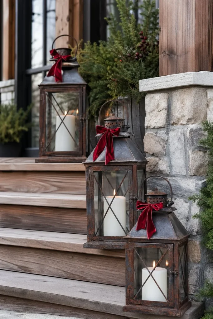 16. Decorate the Porch Steps with Vintage Metal Lanterns