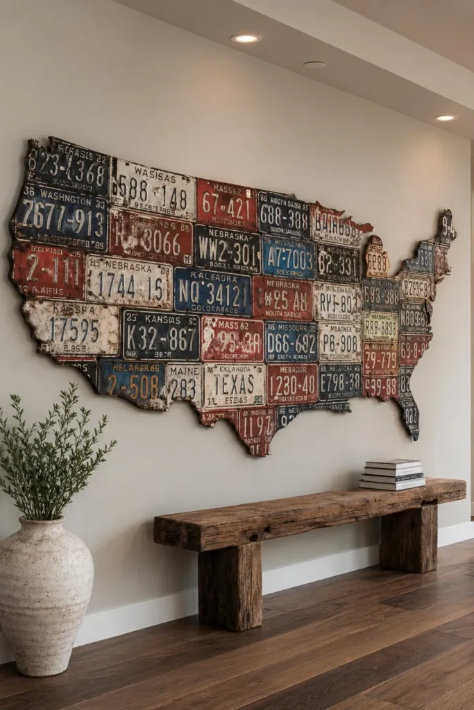 - 18. Style a Rustic Americana Decor Wall with Old License Plates