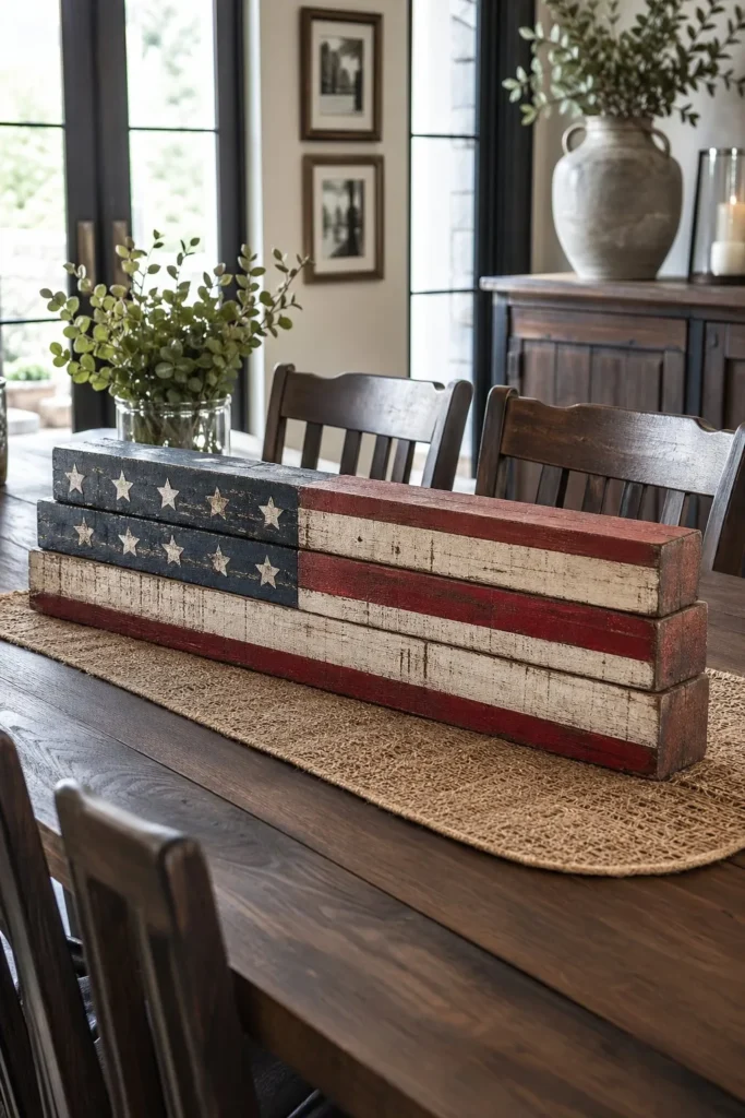 3. Create a Rustic Flag Centerpiece Using Reclaimed Wood