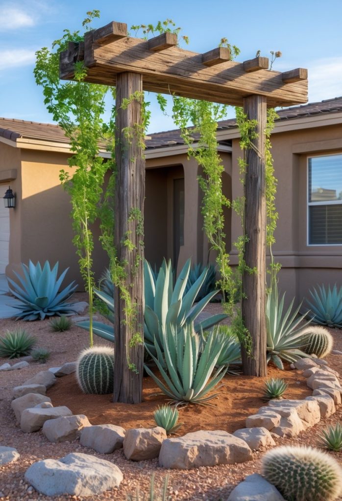 15. Install a rustic wooden trellis for climbing desert plants