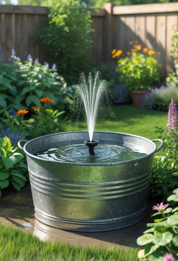 - 2. Small Galvanized Tub Pond with Fountain Pump