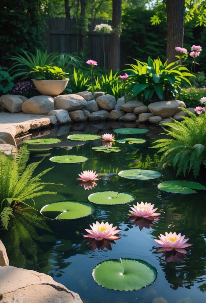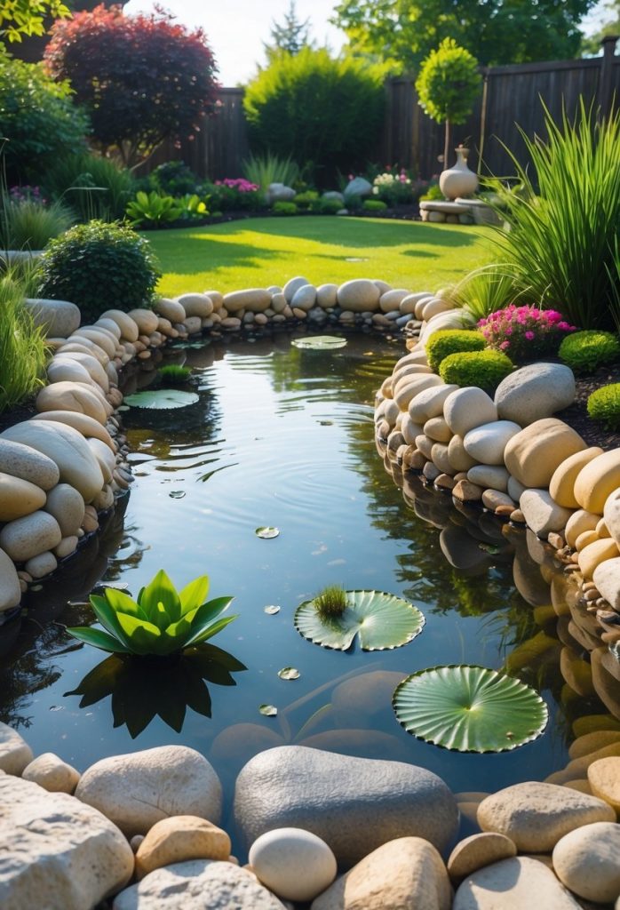 You can create a peaceful pond by using natural stones around the edges. Adding native aquatic plants helps the pond blend with your garden.