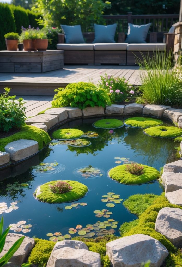 7. Patio Pond with Aquatic Moss and Floating Plants