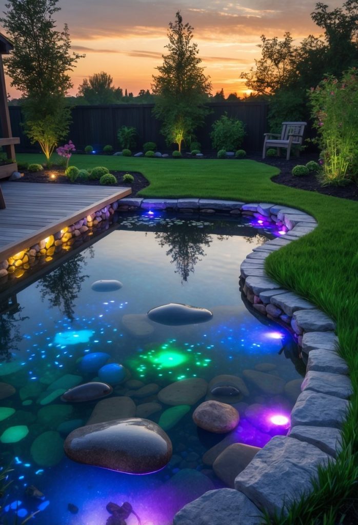 - 10. Pond with Floating Solar Lights for Night Ambiance