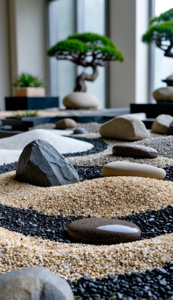 5. Add miniature zen garden features with sand and rocks