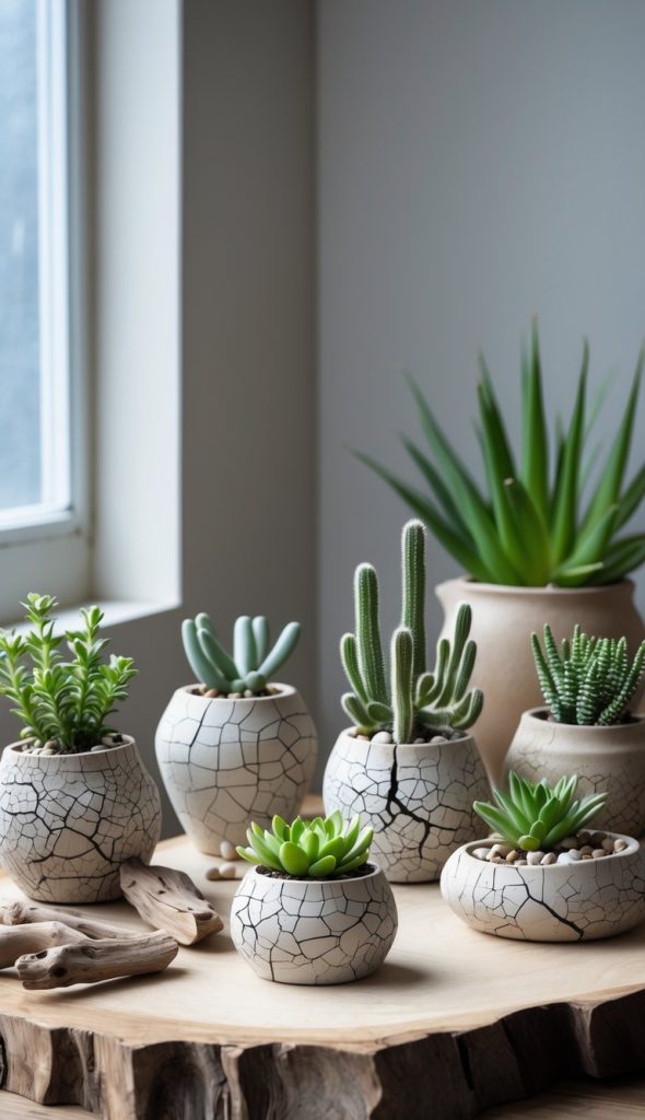 You can turn cracked pottery pieces into small plant holders. Just clean the pieces well and fill them with soil. These create unique spots for tiny succulents or cacti.