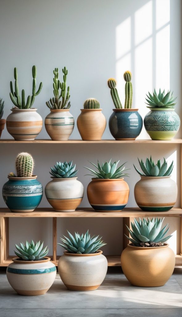 6. Place decorative ceramic pots with desert plants