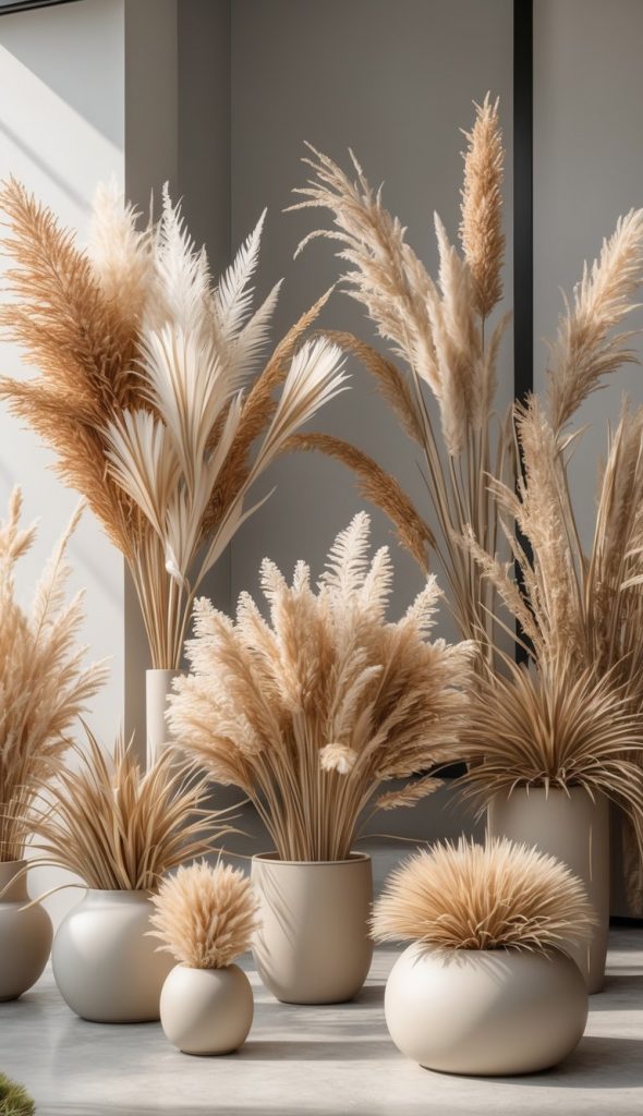 You can add dried ornamental grasses to bring texture to your indoor dry garden. They are low maintenance and last a long time. These grasses create a natural, soft look that fits well with other dried plants. Try mixing different types for variety and interest.