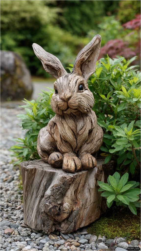 You can turn a simple tree stump into a charming animal sculpture. This adds a playful and natural touch to your garden.