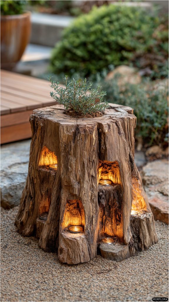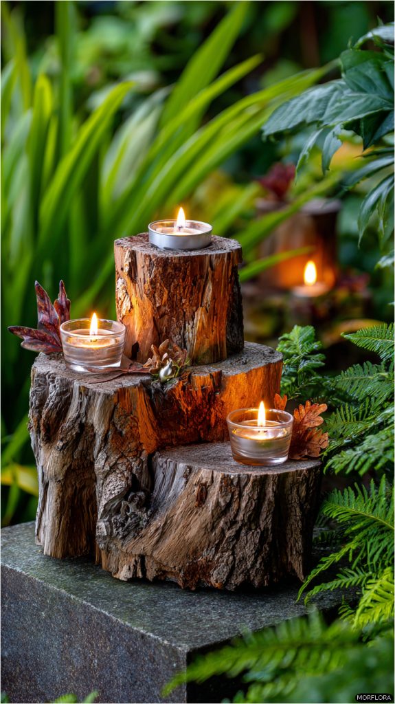 - 8. Tree Stump Candle Holders for Outdoor Ambience