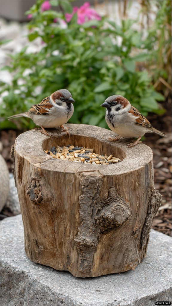 28. Tree Stump with Built-in Bird Feeder