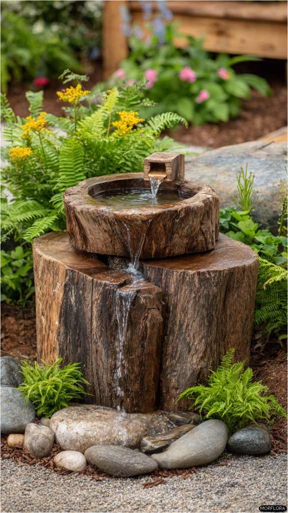 29. Tree Stump Fountain with Flowing Water