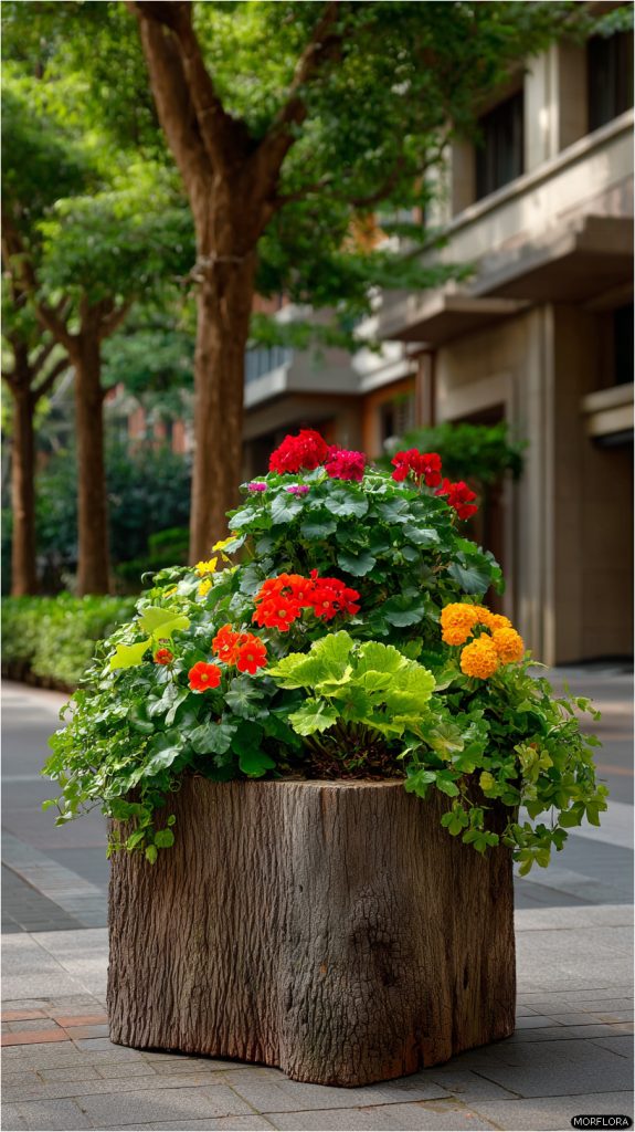 - 3. Tree Stump Planter with Vibrant Flowers