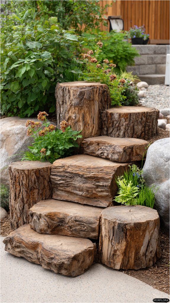 This idea adds charm to your garden while using natural textures. It’s an easy way to bring life to old stumps without much work.
