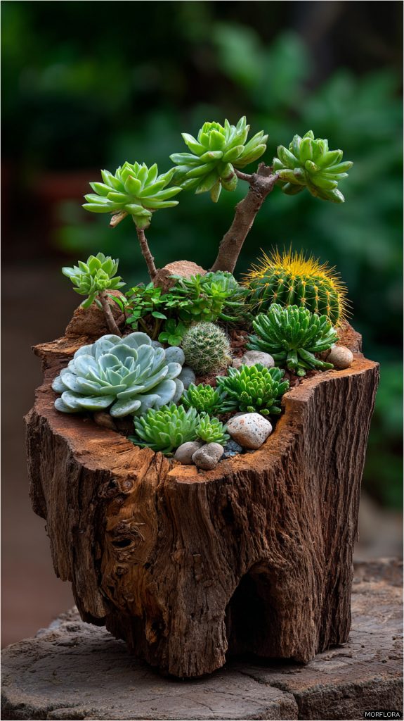 - 9. Succulent Garden Inside Hollowed Stump