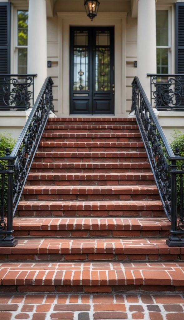 You can create a warm, welcoming entrance with classic brick steps. Adding wrought iron railings gives your steps a strong, stylish look.