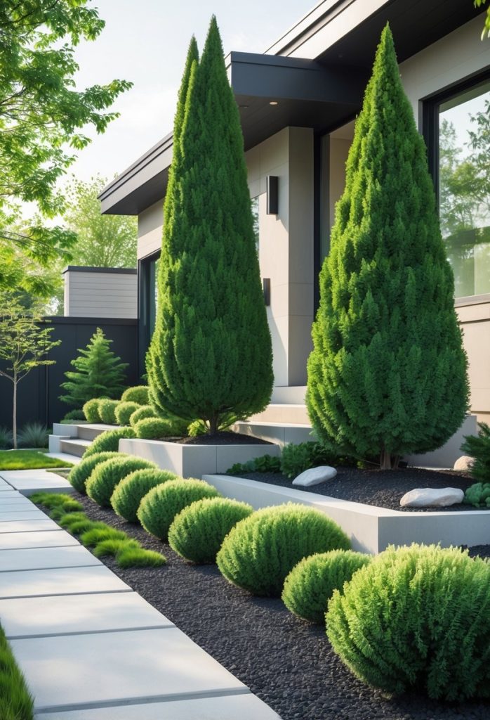 You can create a balanced look by placing a walkway in the center of your yard. Add matching shrubs on both sides to keep the symmetry. This design gives your front yard a neat and welcoming feel.