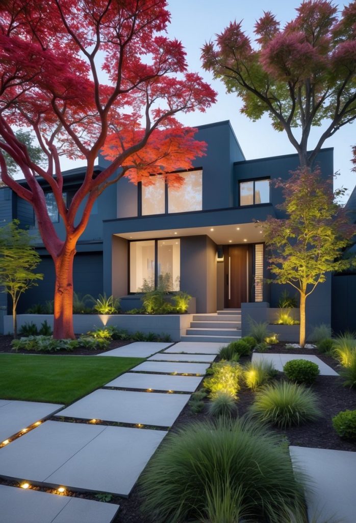 You can make your front yard stand out by planting a Japanese maple. Its unique shape and rich colors add a strong visual point. This tree works well in modern gardens with clean lines and simple designs. It brings beauty without needing much space.