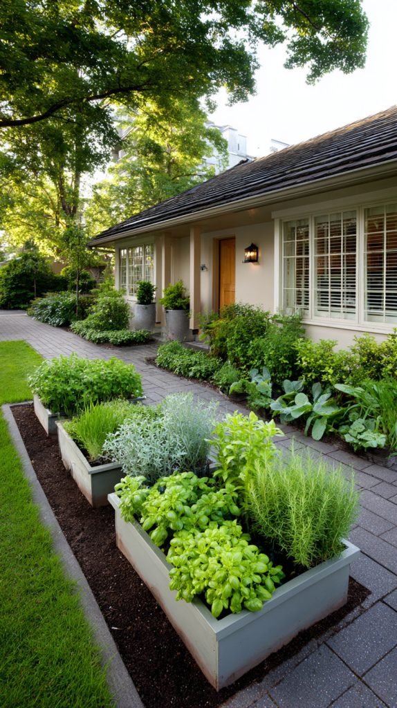 You can add a lovely touch to your front yard with a miniature herb garden. Use small pots, raised beds, or vertical planters to save space.