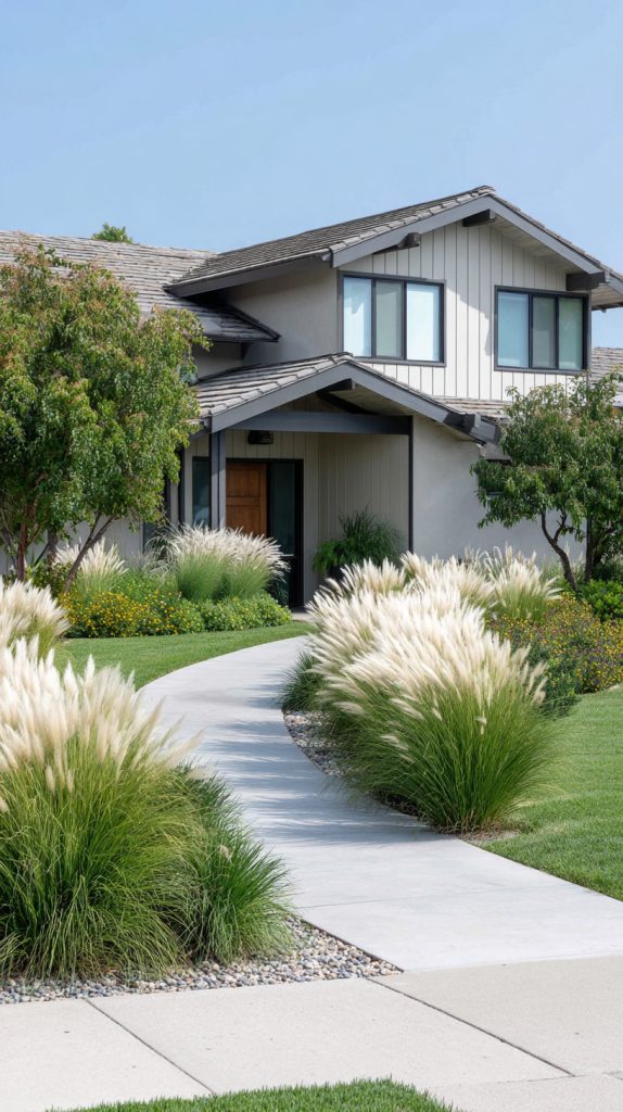You can add movement and texture to your front yard by mixing different ornamental grasses. Choose a variety of heights and colors for a natural, lively look.