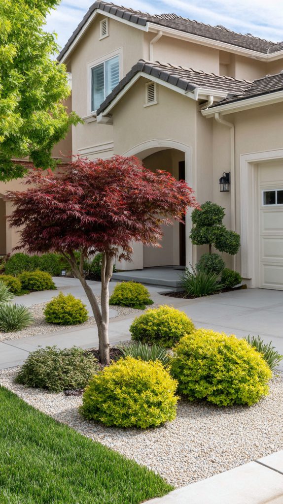 Compact Japanese maple trees are perfect if you have a small front yard. They stay small and grow slowly, so they won’t take over your space.