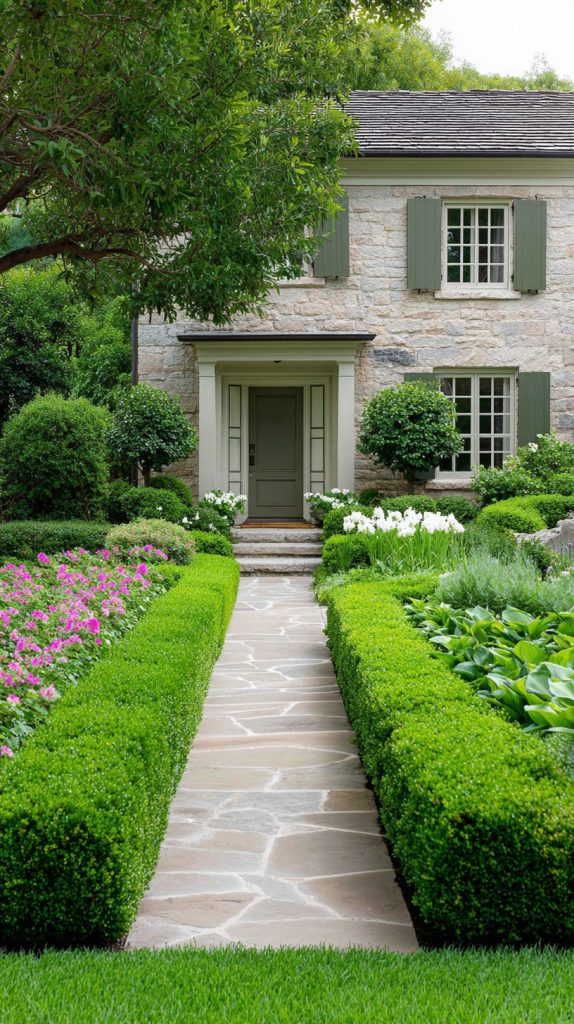 You can use boxwood hedges to create a clean, timeless look for your front yard. These shrubs grow slowly, so they keep their shape well.