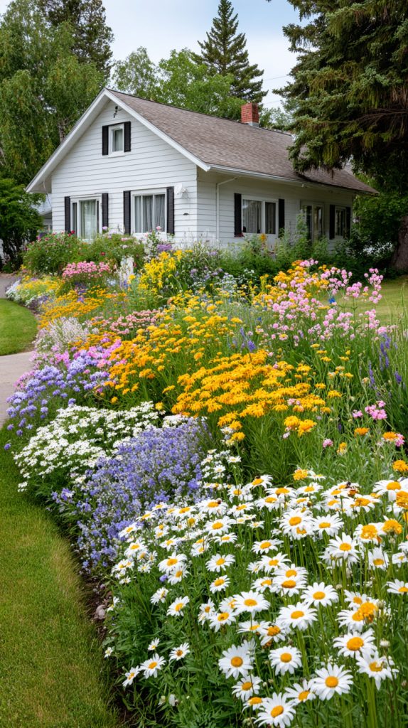 Plant native wildflowers like daisies, violets, and dandelions to support local wildlife.
