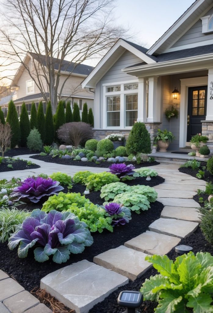 You can add color to your front yard with ornamental kale during chilly seasons. It stays vibrant even when temperatures drop. Place it in borders or as a focal point to brighten your space. It needs little care and handles cold weather well, making it great for winter interest.