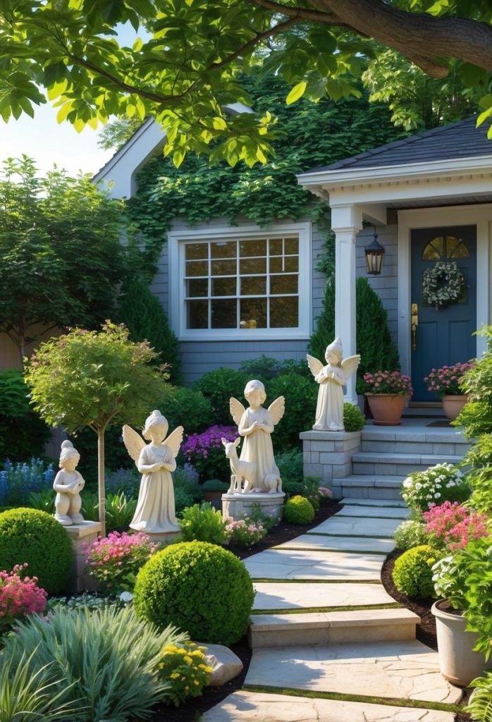 You can use garden statues to add personality to your front yard. Choose pieces that match your style and the size of your space. Small statues work well in compact yards without making it feel crowded. Place them where they can be seen easily, like near walkways or flower beds.
