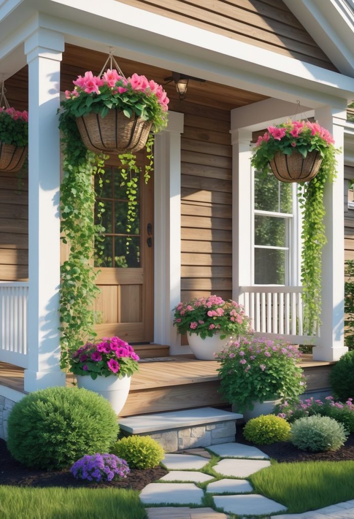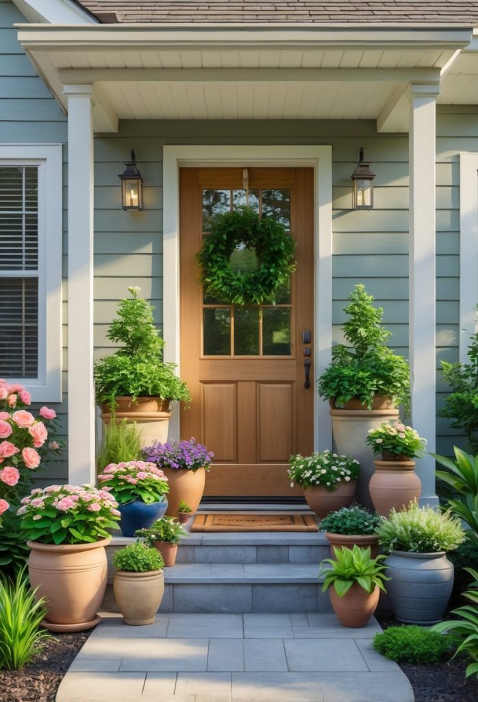 Adding container plants by your front door makes your entryway feel warm and welcoming. You can choose colorful flowers or green plants to match your home’s style. Containers are also easy to move, so you can change your look anytime you want.